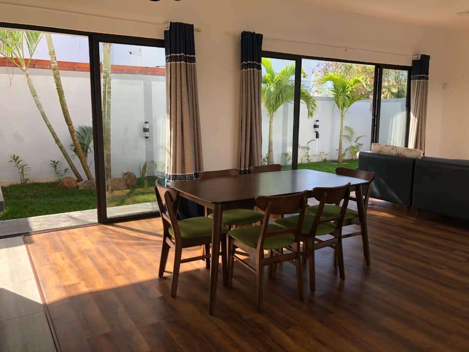 A l’extérieur, cette jolie villa dispose également d’une terrasse extérieure, d’une piscine privée et d’un petit jardin.
