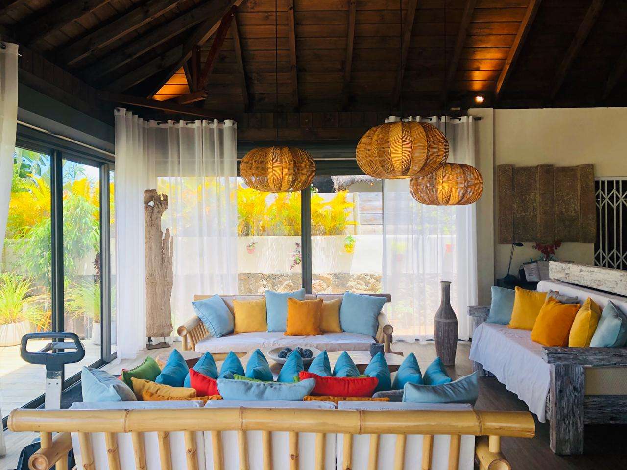 Magnifique villa de style balinais d’une superficie de 405m2 située dans une résidence sécurisée comprenant 11 Villas. Ce complexe se trouve au nord de l’île, à Pereybère (proche des commodités, de la plage et du quartier commerçant).