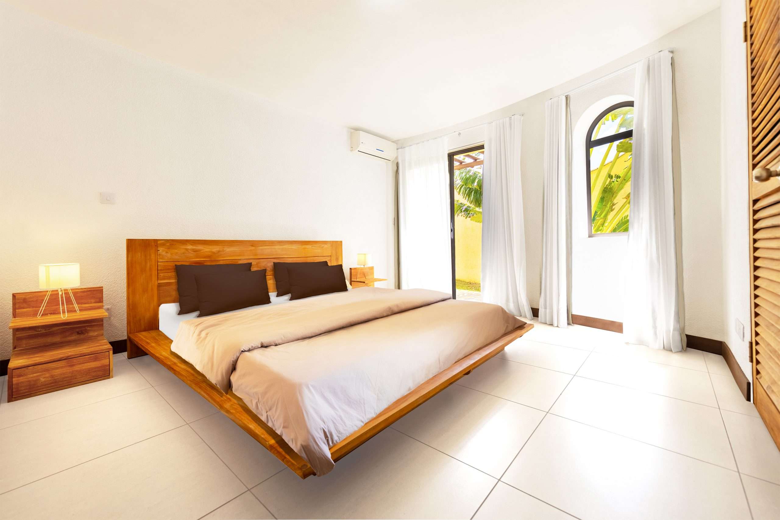 A l’étage, vous trouverez une grande master bedroom avec salle de bain et dressing, et deux chambres climatisées avec une salle de bain commune.