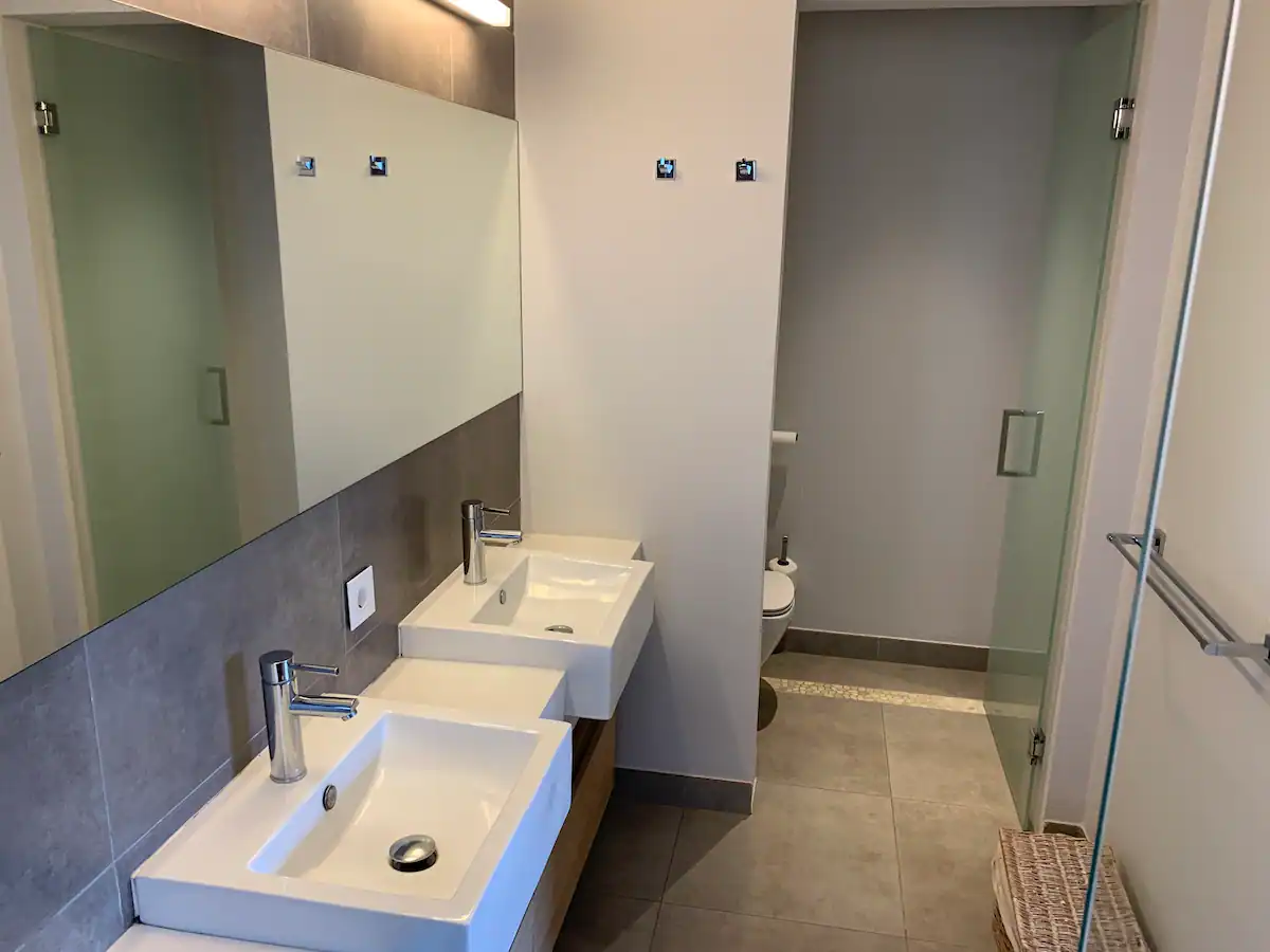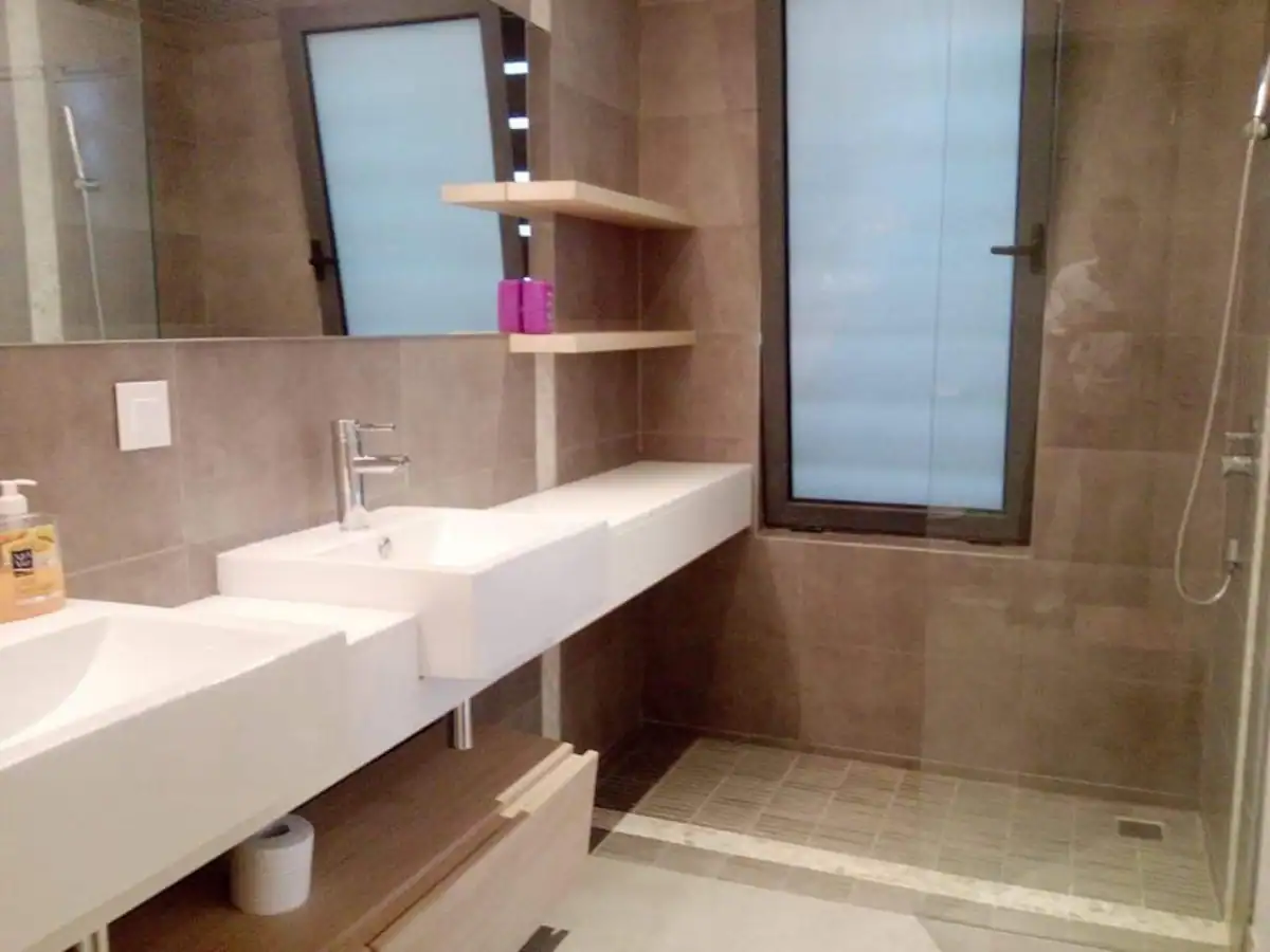 Une grande terrasse couverte complète cet appartement.